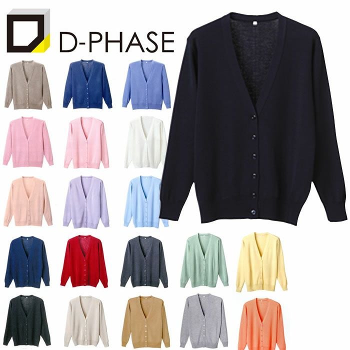 D-1001 抗ピル長袖カーディガン (D-PHASE) S~5L アクリル70%・ウール30% 14ゲージゴム編み
