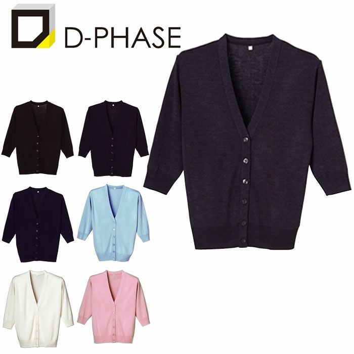 D-1004 抗ピル七分袖カーディガン (D-PHASE) S~LL アクリル70%・ウール30% 14ゲージゴム編み