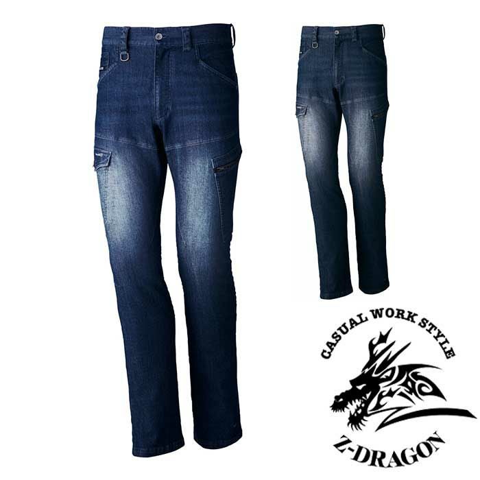 75602 ストレッチノータックカーゴパンツ 自重堂 Z-DRAGON 3シーズン作業服 作業着 73~112 綿65%・ポリエステル33%・ポリウレタン2% ストレッチデニム