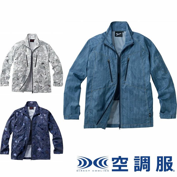 空調服 DIRECT COOLING 自重堂 Jawin 空調服用光沢感あるカモフラ柄とデニム柄をプリントした長袖ジャケット