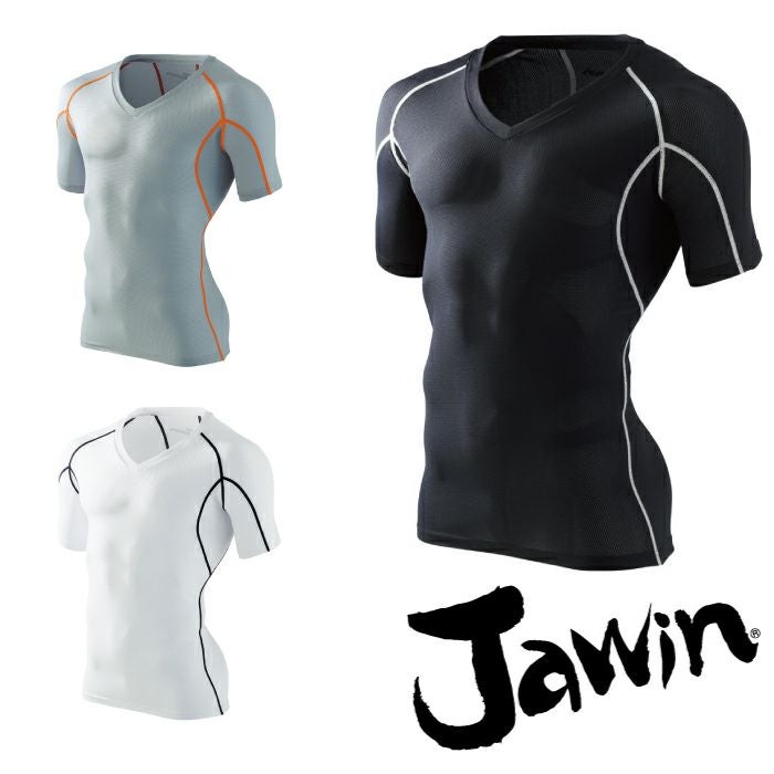 56154 Vネックショートスリーブ(総メッシュ) 自重堂 Jawin 作業服 コンプレッション インナー S~LL ポリエステル88%・ポリウレタン12% メッシュ