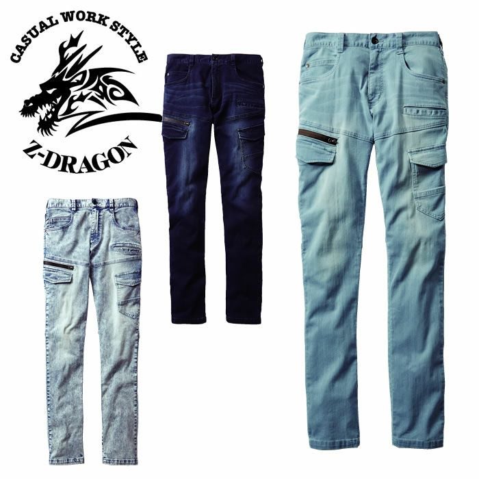 76302 ストレッチノータックカーゴパンツ 自重堂 Z-DRAGON 春夏作業服 作業着 L59~112cm 綿68%・ポリエステル16%・ナイロン14%・ポリウレタン2% コーデュラストレッチデニム