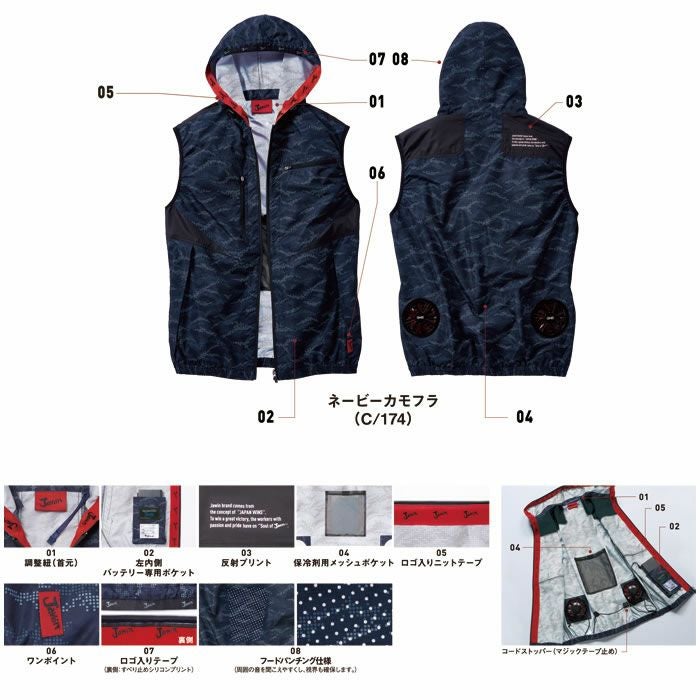 他の画像を見る 空調服 DIRECT COOLING 自重堂 Jawin デジタルカモフラージュ柄の空調服ベスト ロゴ入りニットテープが特徴的なJawinブランド 54120 空調服TMベスト(フード付) 自重堂 Jawin 春夏作業服 作業着 SS~5L ポリエステル100% 高密度タフタ 空調服専用 無料刺繍 春夏 半額以下 WEB特価 ¥ 3,300 税込 詳細を見る お気に入りに登録する