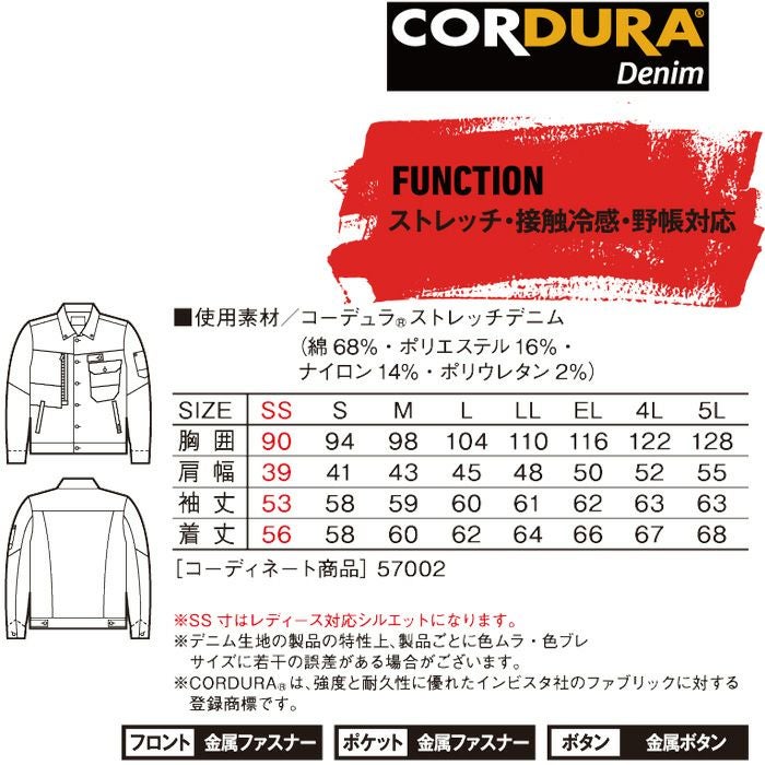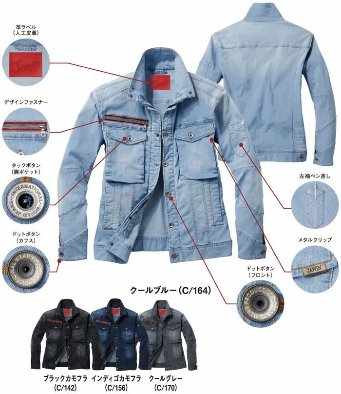他の画像を見る 自重堂 Jawin 接触冷感性・伸縮性・高強度のコーデュラデニムを使用したデニムシリーズ 57000 ストレッチ長袖ジャンパー 自重堂 Jawin 春夏作業服 作業着 SS~5L 綿68%・ポリエステル16%・ナイロン14%・ポリウレタン2% コーデュラストレッチデニム 無料刺繍 春夏 半額以下 メーカー希望小売価格 ¥ 10,780 のところ WEB特価 ¥ 4,950 税込 詳細を見る お気に入りに登録する