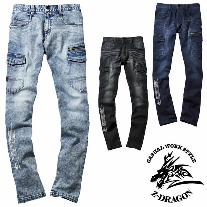 72302 ストレッチノータックカーゴパンツ 自重堂 Z-DRAGON 秋冬作業服 作業着 L59~112 綿60%・ポリエステル24%・ナイロン14%・ポリウレタン2% ストレッチデニム