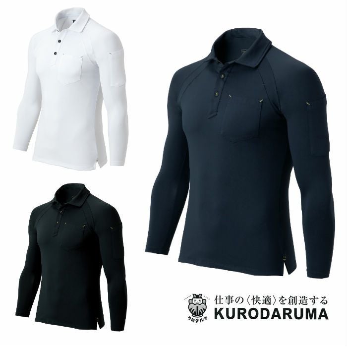 【完売】25452 長袖ポロシャツ(脇スリット) kurodaruma クロダルマ 春夏作業服 インナー コンプレッション S~4L ポリエステル90%・ポリウレタン10%