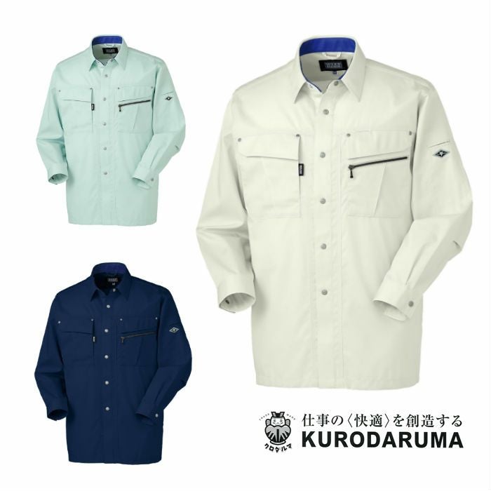 4. 【廃番商品・在庫限り】25523 長袖シャツ kurodaruma クロダルマ 春夏作業服 作業着 S~5L 綿50%・ポリエステル50% サマーツイル