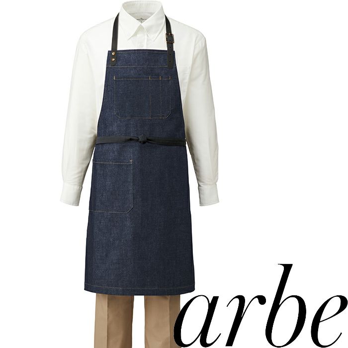 T-8416 デニムエプロン チトセ chitose フリーサイズ 身生地 交織デニム ポリエステル30% 綿70%、首掛けヒモ 合皮