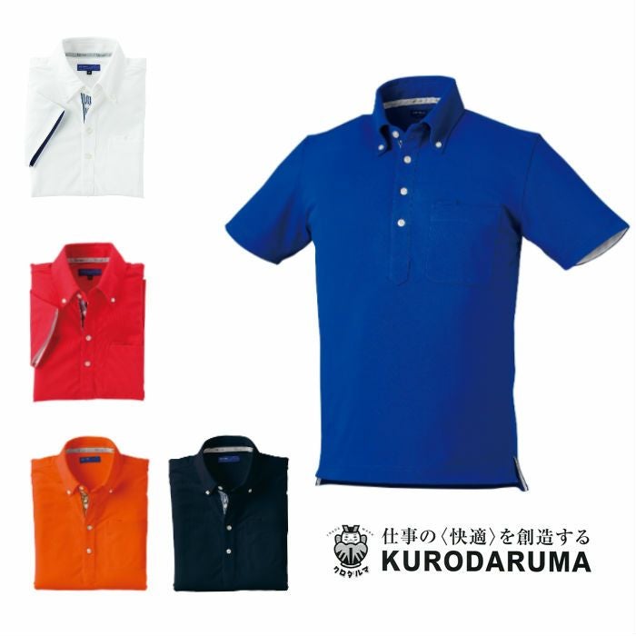 26417 半袖ポロシャツ(ボタンダウン・脇スリット) kurodaruma クロダルマ Tシャツ・ニット S~5L ポリエステル60%・綿40% 裏綿・鹿の子