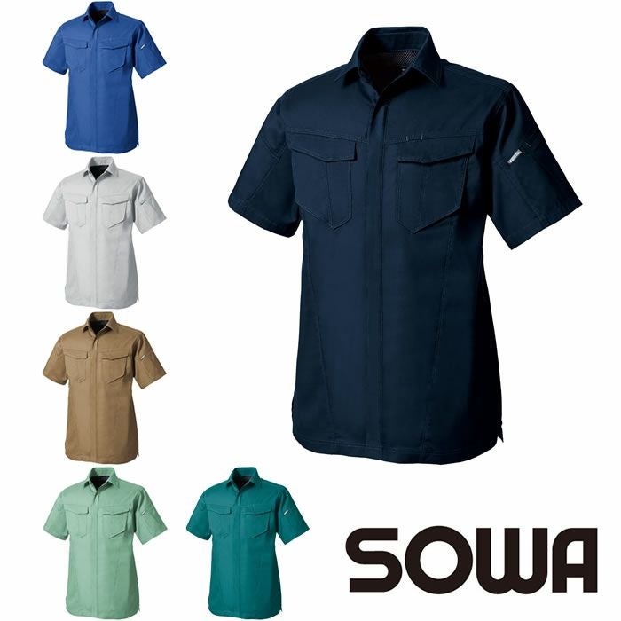 5. 3008-03 半袖シャツ 桑和 SOWA 春夏作業服 作業着 SS~6L ポリエステル65%・綿35% T/C制電ストレッチ
