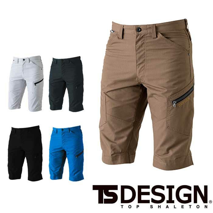 4. 【廃番商品・在庫限り】61145 RIP STOP メンズカーゴショートパンツ TSDESIGN 藤和 作業服 春夏 ハーフパンツ 作業着 S~6L ポリエステル65%・綿35% リップストップ(導電繊維混入)
