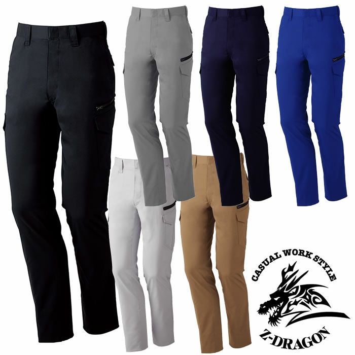 76202 製品制電ストレッチノータックカーゴパンツ 自重堂 Z-DRAGON 春夏作業服 作業着 70~120 ポリエステル65%・綿35% バンジーテックサマーツイル