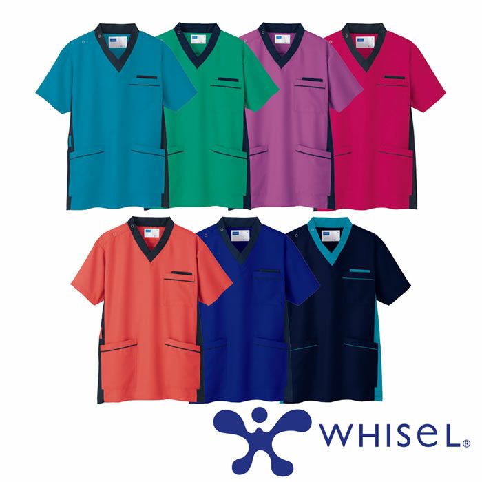 自重堂 WHISeL シャープに見える脇配色の男女兼用スクラブ