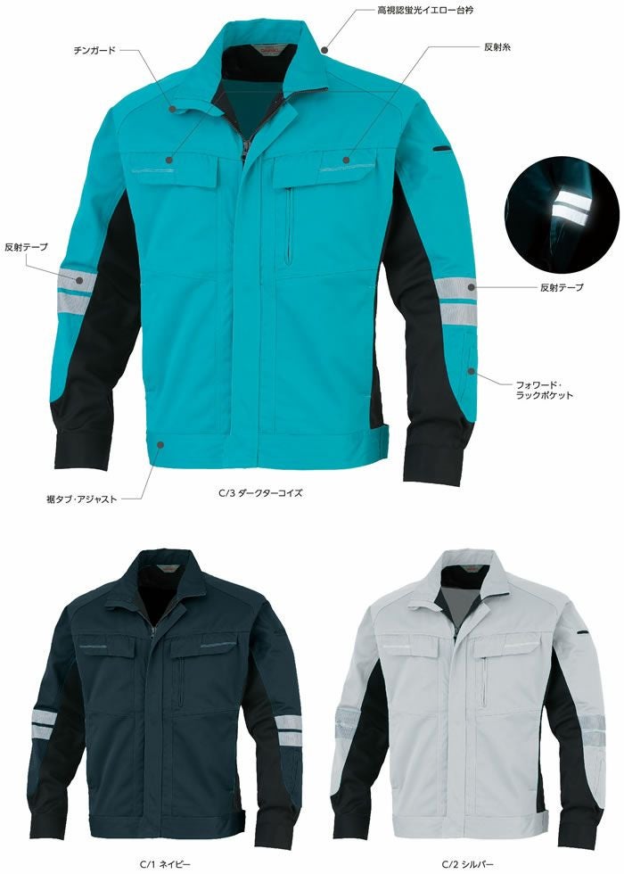 他の画像を見る DAIRIKI 大川被服 薄暗い倉庫内や夜間の作業でも活躍する反射テープ・反射糸使用のデザイン性にも富んだ作業服 31702 長袖ブルゾン DAIRIKI 秋冬作業服 作業着 S~5L ポリエステル65%・綿35% 制電ツイル 無料刺繍 秋冬 半額以下 メーカー希望小売価格 ¥ 11,660 のところ WEB特価 ¥ 5,280 税込 詳細を見る お気に入りに登録する