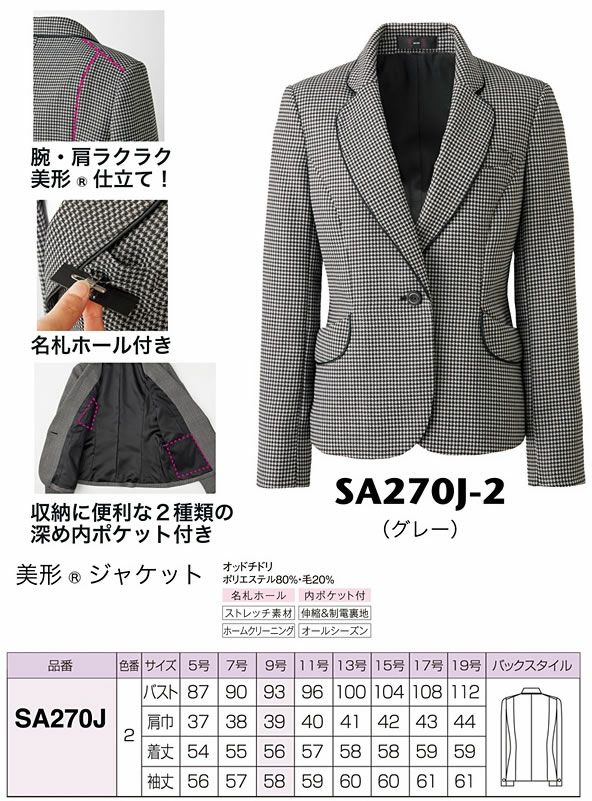 他の画像を見る 神馬本店 JINBA 信頼&責任と共に笑顔と安心感を携えて最高のホスピタリティを演出。 【廃番在庫限り】SA270J 美形ジャケット 神馬本店(selectstage)事務服・制服 5号~19号 ポリエステル80%・毛20% 秋冬 メーカー希望小売価格 ¥ 30,250 のところ WEB特価 ¥ 18,150 税込 詳細を見る お気に入りに登録する