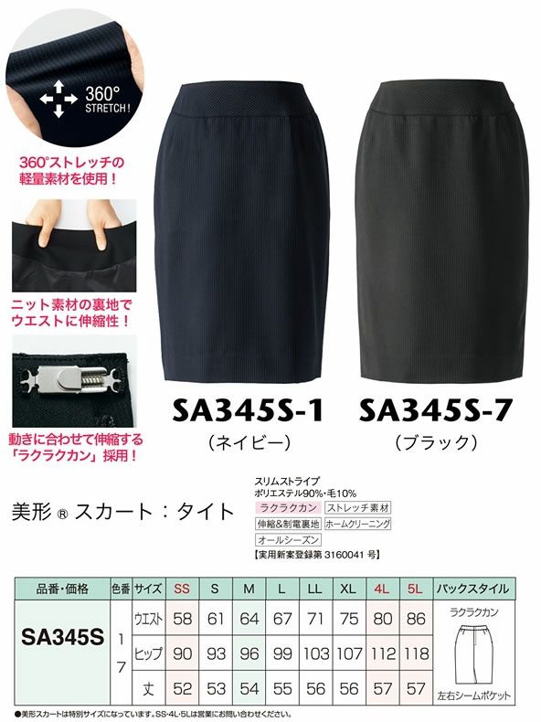 他の画像を見る 神馬本店 JINBA 動きにフィット、背筋ピン!360℃強力ストレッチで美しくしなやかな着心地 SA345S 美形スカート:タイト 神馬本店(selectstage)事務服・制服 SS~5L ポリエステル90%・毛10% 秋冬 メーカー希望小売価格 ¥ 15,400 のところ WEB特価 ¥ 9,515 税込 詳細を見る お気に入りに登録する