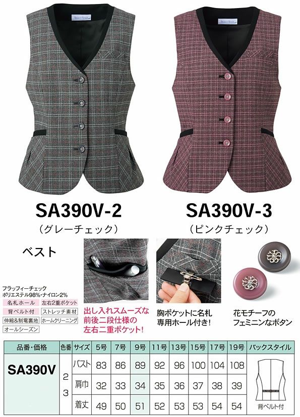 他の画像を見る やわらかチェックでベストスタイルをワンランクアップ。 SA390V ベスト 神馬本店(selectstage)事務服・制服5号~19号 ポリエステル98%・ナイロン2% 秋冬 メーカー希望小売価格 ¥ 19,800 のところ WEB特価 ¥ 12,265 税込 詳細を見る お気に入りに登録する