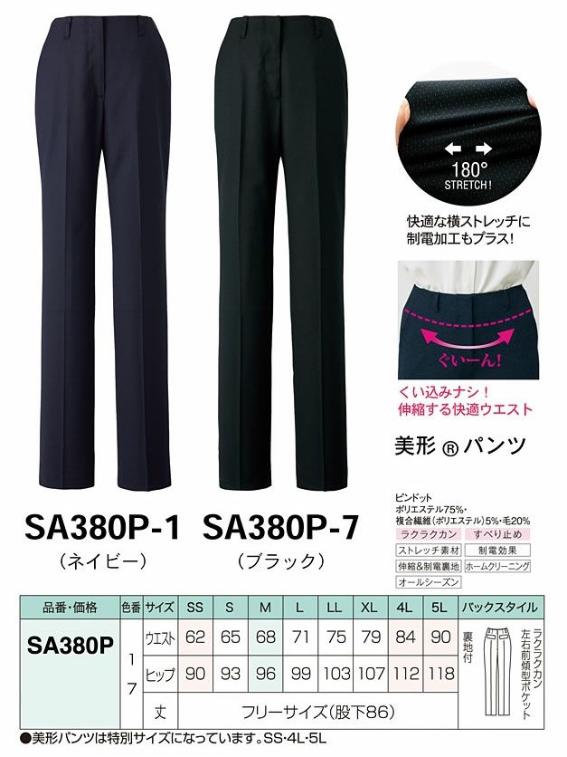 他の画像を見る 神馬本店 JINBA 動きにフィット、背筋ピン!360℃強力ストレッチで美しくしなやかな着心地 SA340P 美形パンツ 神馬本店(selectstage)事務服・制服SS~5L ポリエステル90%・毛10% 秋冬 メーカー希望小売価格 ¥ 20,900 のところ WEB特価 ¥ 12,925 税込 詳細を見る お気に入りに登録する