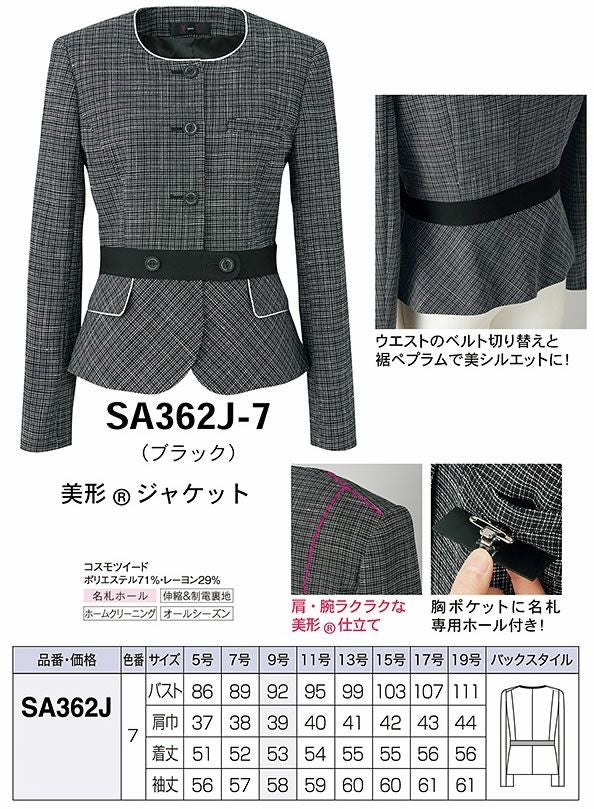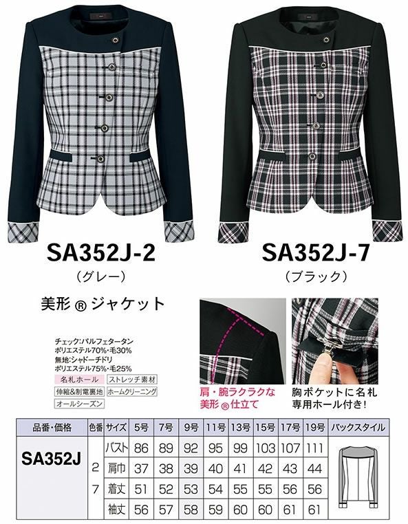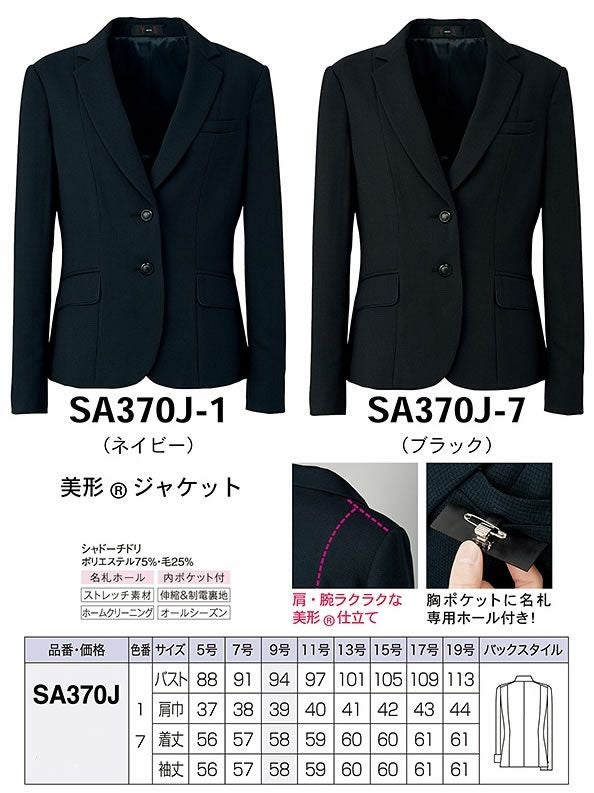 【廃番商品・在庫限り】SA352J 美形ジャケット 神馬本店(selectstage)事務服・制服 5号~19号 ポリエステル71%・レーヨン29%