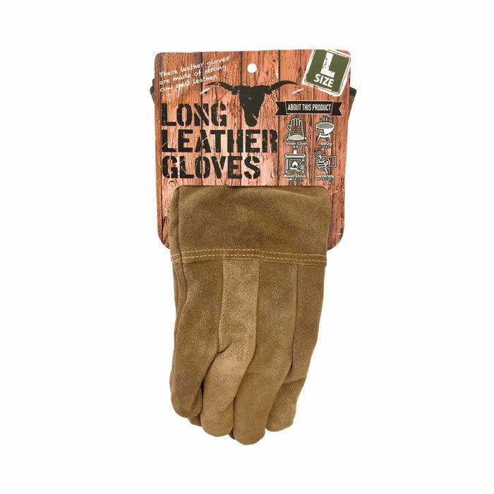 46L ロング革手 アウトドア バーベキュー ガーデニング 焚き火 薪ストーブ M・Lサイズ ブラウン ユニワールド
