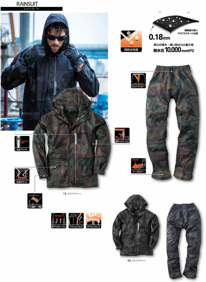 他の画像を見る EVENRIVER カモフラ柄のレインスーツ 作業で使える生地厚感 耐水圧10,000mm 2550 カモフラージュレインスーツ EVENRIVER イーブンリバー ヤッケ 合羽 雨具 M~5L ポリエステル100% 半額以下 メーカー希望小売価格 ¥ 14,520 のところ WEB特価 ¥ 6,050 税込 在庫切れ 詳細を見る お気に入りに登録する