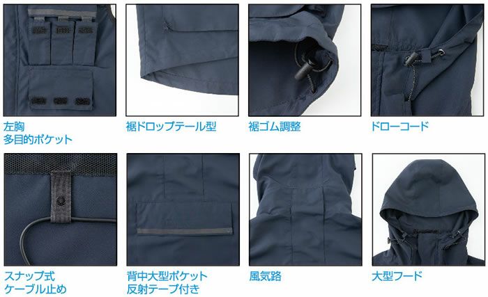 MK-100 00100 MHAK空調風神服フード付きベスト DAIRIKI 春夏作業服 作業着 M~5L ポリエステル100% 空調風神服専用
