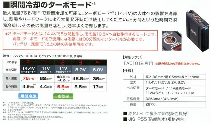 他の画像を見る 2023NEW 空調服® DIRECT COOLING 14.4V空調服スターターキット バッテリー+ワンタッチファン+充電アダプター +ウェア購入ですぐに使用ができるセット品 XS23021 SK23021 空調服®用14.4Vスターターキット 最大風量76リットル 自重堂 ジーベック 春夏作業服 ファン付き作業着 (株)セフト研究所 春夏 WEB特価 ¥ 17,050 税込 在庫切れ カートに入れる お気に入りに登録する