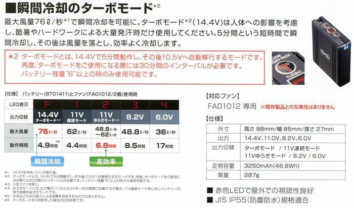 XEBEC ジーベック 空調服バッテリー 赤色LEDを採用し、屋外での視認性が向上しました