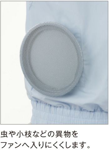 衣服後ろ側の両側左右に付いた2つのファンから送り出される空気で、衣服内を涼しく・暑い夏も快適に! サンエス商品ならイベントなどにもおすすめのポリエステル素材や、綿素材着用が必要な現場への綿100%素材、カッコよさや定番等が揃っているT/C素材など、シーンに合わせてお選びいただけます!シリーズの豊富さなら空調風神服販売元のサンエス。