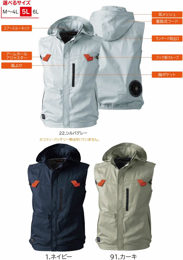 両側のファンはサンエスと同仕様。ビックボーン製品は女性が着用できるSサイズから最大7Lサイズまで対応で他にはないサイズの豊富さが注目点。素材は撥水・透湿のポリエステル素材・着心地が良い綿素材・半袖も展開しているトロピカルT/C素材で展開。小さいサイズ・大きいサイズで困ったらビックボーンでの検討をお薦めいたします。