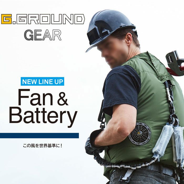 桑和のファン付き作業服シリーズG.G.ブランド。2024年モデルは業界トップクラスの高出力20V&大容量20000mAhバッテリー。ファンは軽量で高風量連続運転が可能。