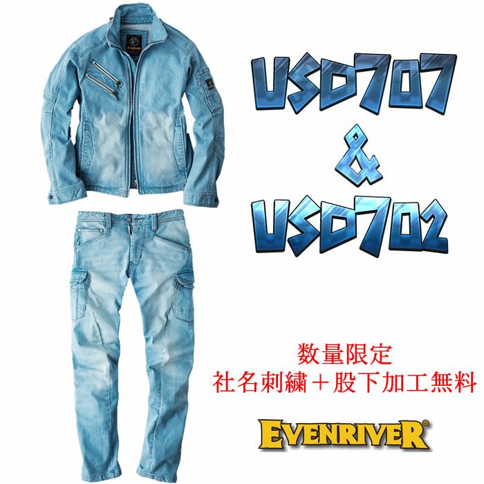 他の画像を見る EVENRIVER 夏限定のカラーのアイスブルーが数量限定で登場 上下セットのデニムワークウェア 社名刺繍・裾上げ無料 USD707+USD702 ストレッチブラストブルゾン+ストレッチブラストカーゴ 上下セット EVENRIVER イーブンリバー 春夏 社名刺繍無料+裾直し無料 作業服 作業着 S~5L 綿99%・ポリウレタン1% ストレッチデニム 無料刺繍 秋冬 春夏 WEB特価 ¥ 11,000 税込 詳細を見る お気に入りに登録する