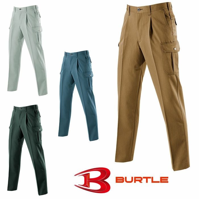 【廃番商品・在庫限り】8052 ワンタックカーゴパンツ BURTLE バートル 秋冬作業服 作業着70~125 ポリエステル75%・綿25% 日本製ヴィンテージソフトツイル