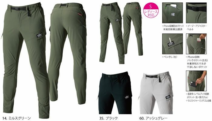 2022SS-NEW 【完売】BURTLE バートル 高耐久ストレッチ素材CORDURA使用のアウトドアワークに最適なスリムパンツ