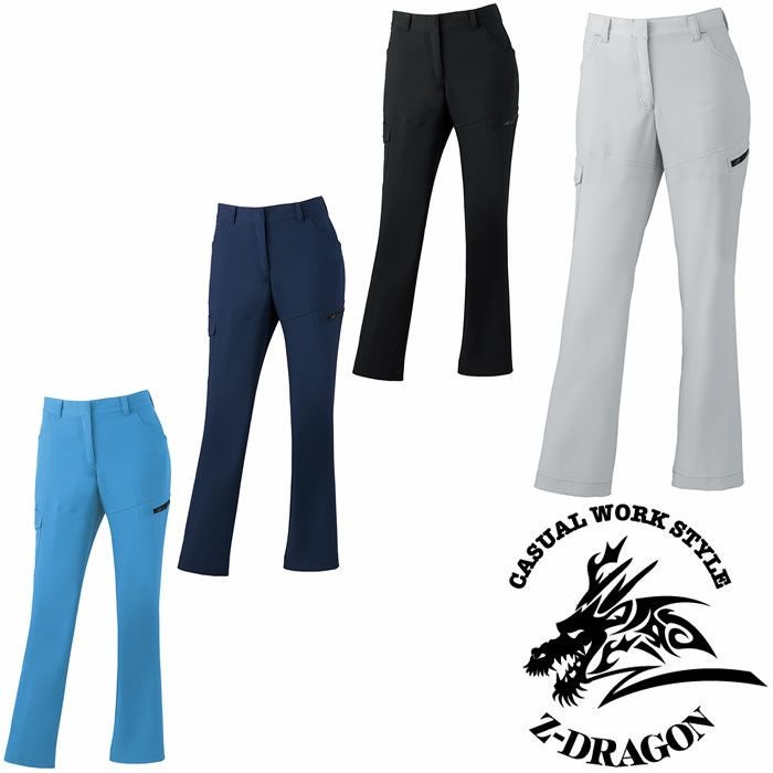 76016 製品制電ストレッチレディースカーゴパンツ 自重堂 Z-DRAGON 春夏作業服 作業着 59~101 ポリエステル95%・綿5% ストレッチ裏綿ドビー