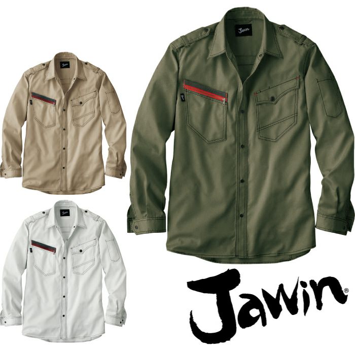55204 長袖シャツ 自重堂 Jawin 春夏作業服 作業着 S~5L ポリエステル65%・綿35% シャドーストライプサマーツイル